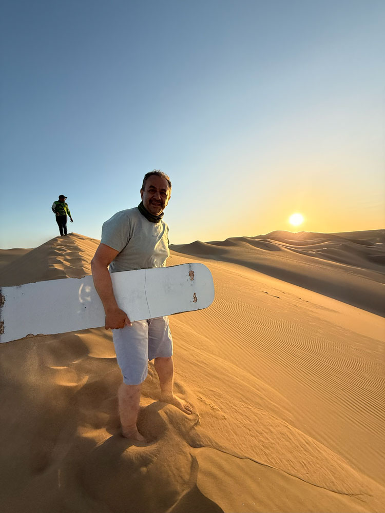پس از صرف نهار به سمت ایکا خواهیم رفت پس از تحویل اتاق ها و استراحتی کوتاه به سمت واحه هوکاچینا خواهیم رفتیم. تا پیش از غروب خورشید با خودروهای بوگی به روی رمل های کویر خواهیم رفت و با سندبرد روی شن ها تفریح میکنیم.